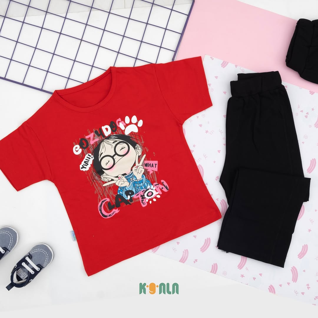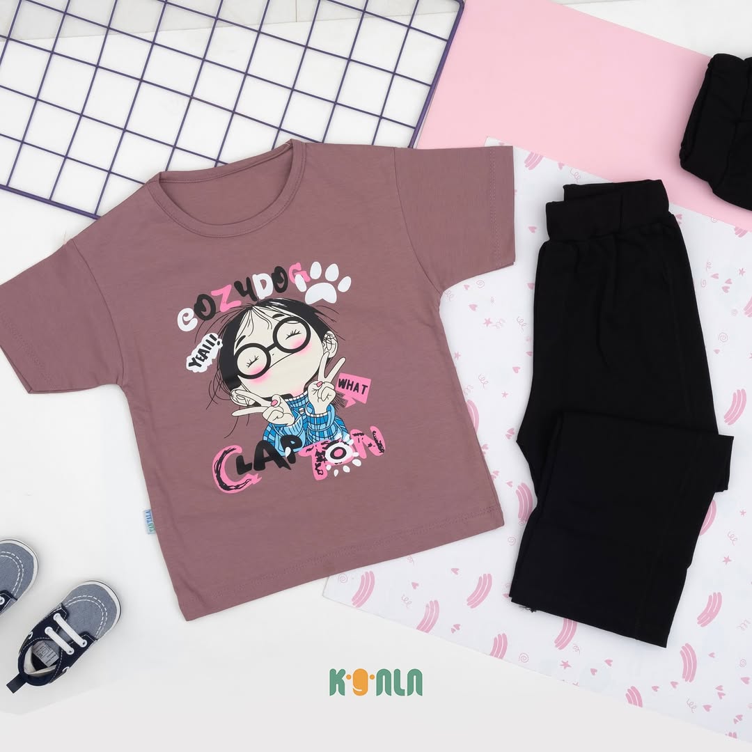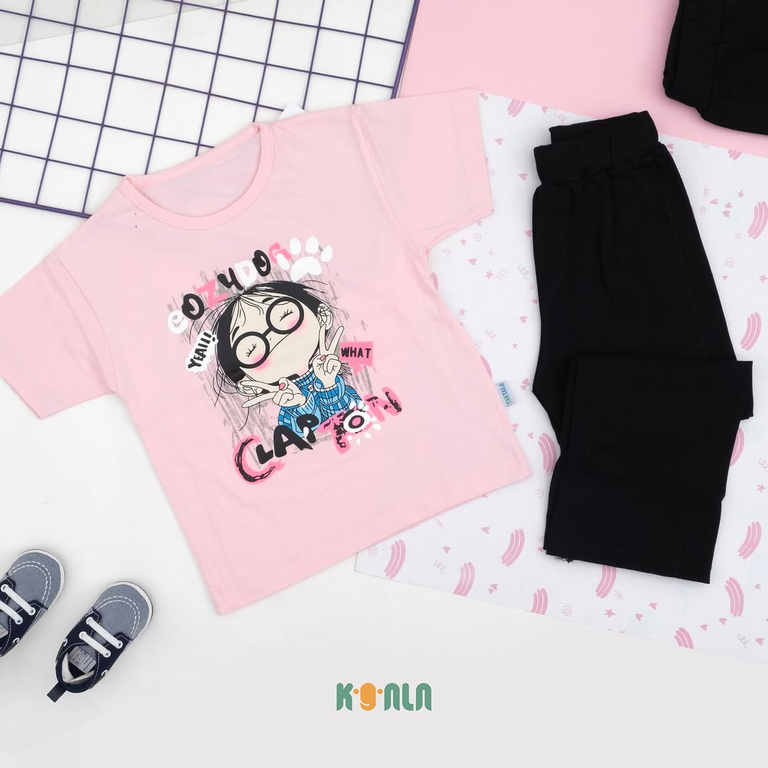 ست تیشرت و شلوار دختر عینکی